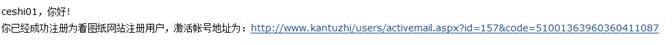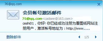 点击【注册】按钮,会员E-Mail收到来自看图纸网站的注册用户激活账户邮件,同时界面提示注册成功。