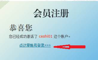 提示注册成功,操作【点这里帐号登录>>>】即可进入会员登录界面,进行会员登录。
