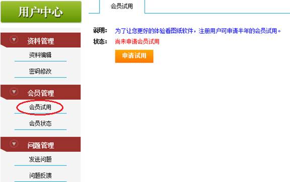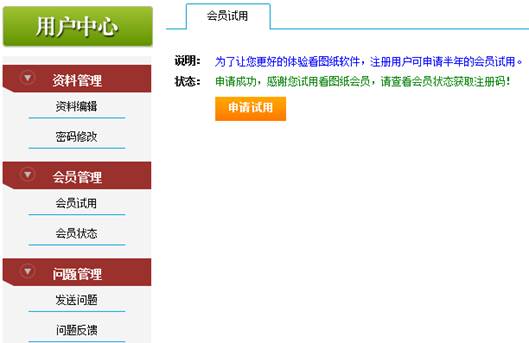 1. 【申请试用】后,用户级别为【注册会员】,软件的使用权限参见第2节。
